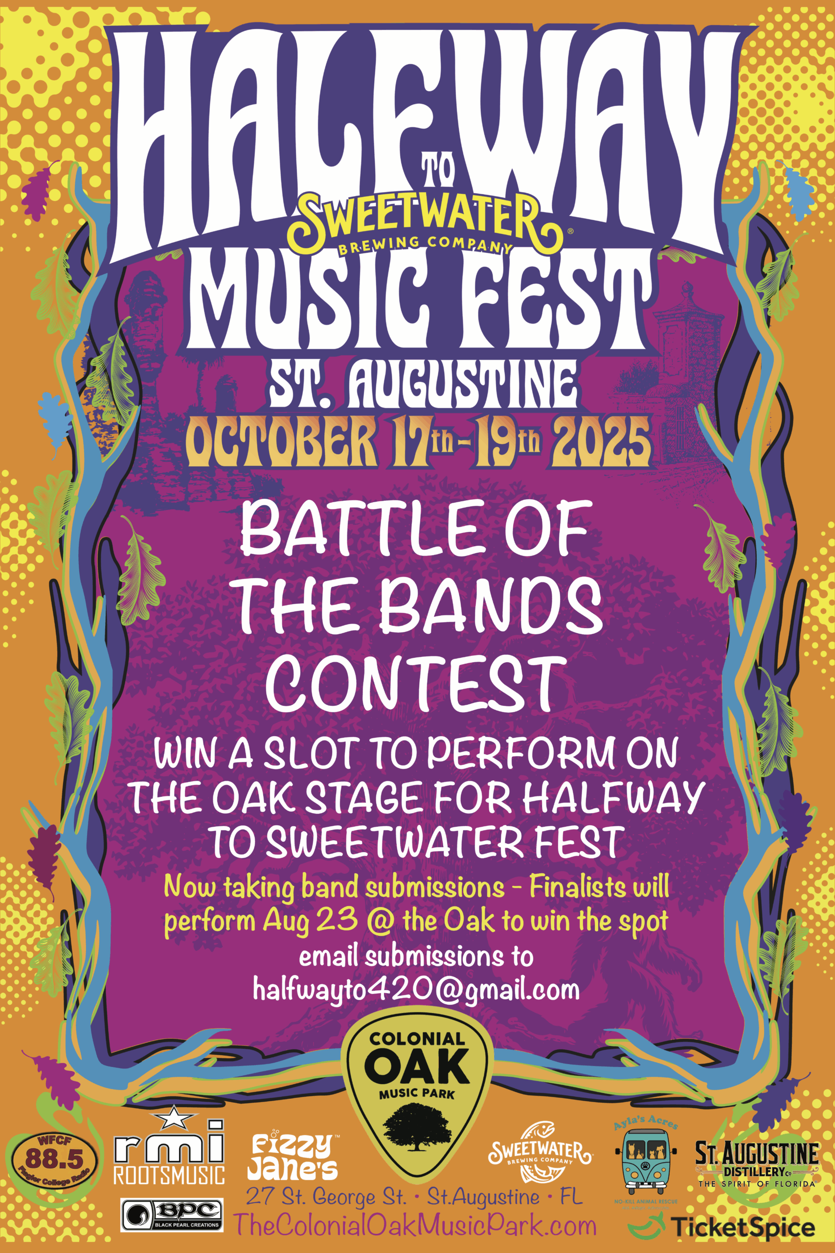Colonial Oak Music Park 21 St George Street, St Augustine, FL, United StatesJoin us at the Oak with Cumberland! Stick around and enjoy this night brought to you by Cazadores Tequila FREE show 7-10 PM Fun for all ages Friendly pups welcome Multiple bars stocked with craft beers, St. Augustine Distillery Products, & more! On site dining from St. Augustine Seafood Company! Click here for Instagram! Click here for Facebook!
