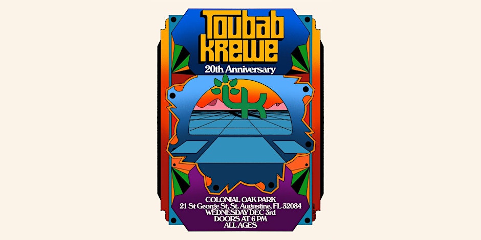 Join us at the Oak with latin fusion band, Baba Caiman! FREE show 7-10 PM Fun for all ages Friendly pups welcome Multiple bars stocked with craft beers, St. Augustine Distillery Products, & more! On site dining from St. Augustine Seafood Company! Click here for Instagram! Click here for Facebook!